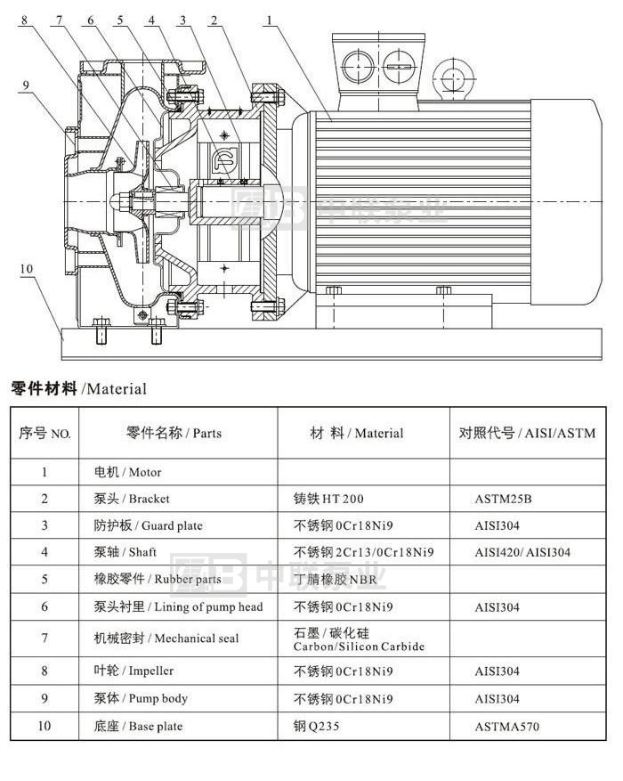 Горизонтальный одноступенчатый центробежный насос из нержавеющей стали TS представляет собой насос с прямым соединением вала, состоящий из насоса, вала и стандартного электродвигателя: